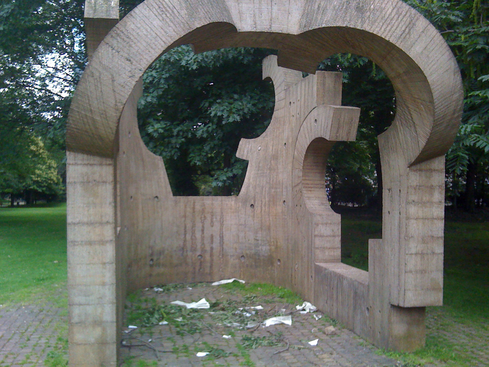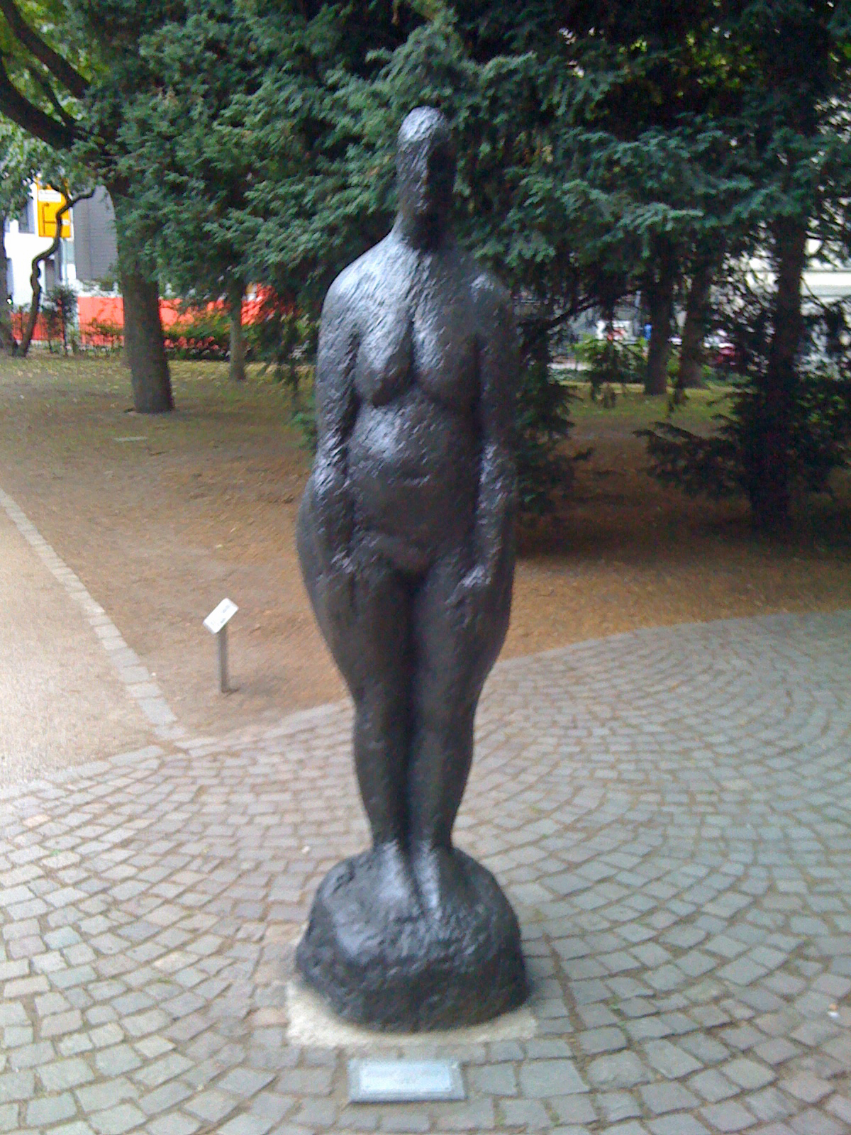 Wir sind gegen 18 Uhr gestartet, bis zum Einbruch der Dunkelheit haben wir es geschafft, 19 der 23 Stationen zu besuchen – ein Kunstwerk haben wir zwischendurch schlicht übersehen. Die QR-Codes ließen sich sowohl mit dem NeoReader auf dem iPhone 3G als auch mit i-nigma auf dem iPhone 4 recht gut scannen. Mein Kritikpunkt ist, dass die Schilder so niedrig und nicht immer gut sichtbar sind. Man muss sie oft suchen, und mein iPhone hatte mit dem Schattenwurf durch die Büsche und Bäume ringsum zu kämpfen – ich musste grundsätzlich vor den Schildern in die Hocke gehen und ein bisschen mit dem Winkel experimentieren, um die Codes abscannen zu können. Darüber hinaus befinden sich die Schilder auch an Stellen, wo es nicht zwingend erforderlich wäre, auf den Grünflächen, teilweise sogar hinter niedrigen Einfassungen. Das war für mich kein Problem, aber barrierefrei ist es nun wirklich nicht – das ist ein Aspekt, der meiner Meinung nach bei der Erweiterung des Projekts stärker bedacht werden sollte.