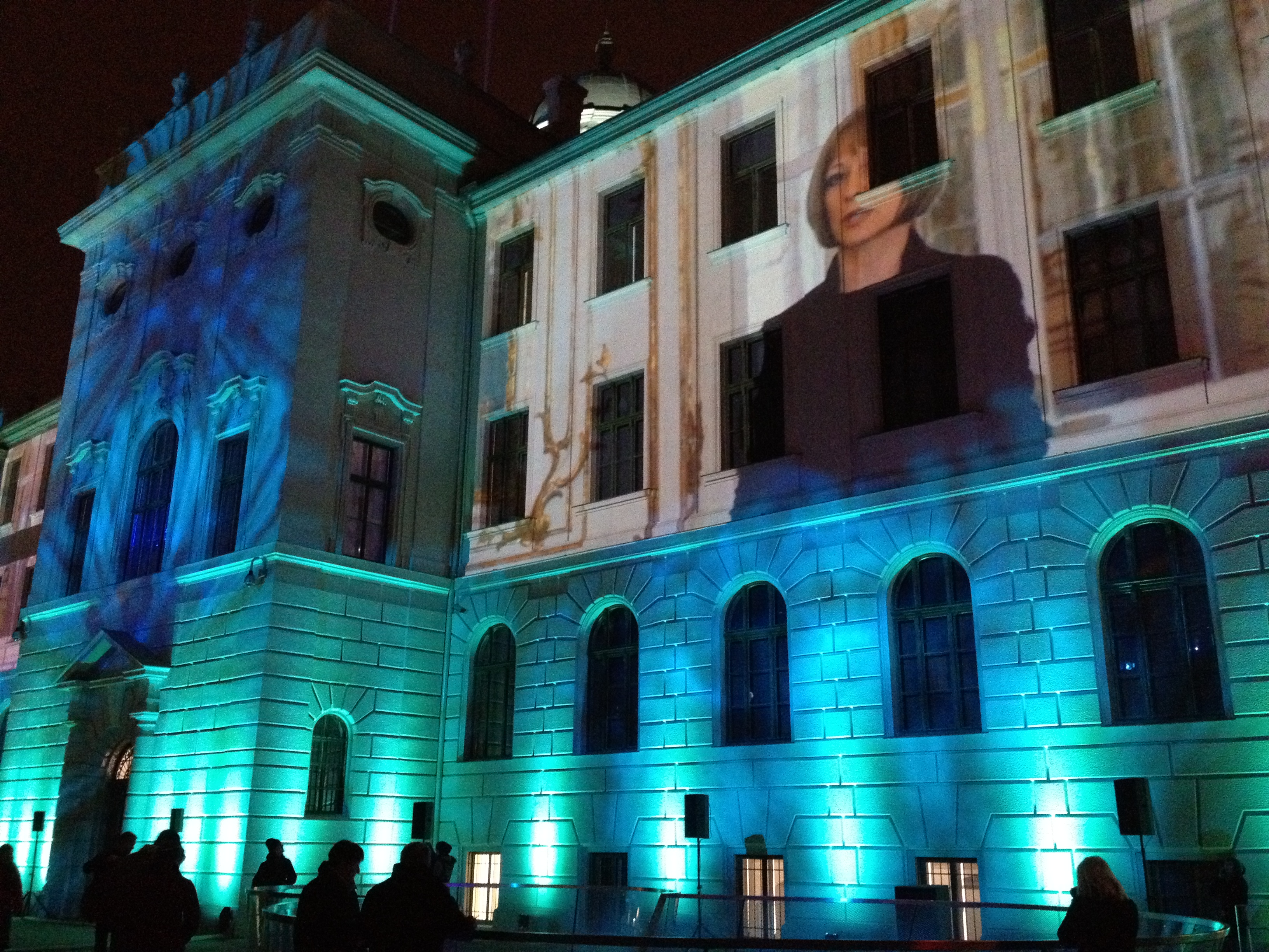 Für diejenigen, die sich nicht mehr oder noch nicht in den Ausstellungsräumen aufhielten, gab es einen Adventmarkt im Joanneumsviertel. An einigen Ständen, die ebenfalls von den Architekten des Viertels designt wurden, konnte man sich mit heißen Getränken und Essen versorgen. Zu einem Erlebnis wurde der Aufenthalt allerdings durch eine sehr gelungene Installation – auf die Fassaden wurden kurze Videoclips geworfen, in denen die Kuratoren die unterschiedlichen Sammlungen vorstellten. Unterbrochen und untermalt wurde das Ganze durch Musikkompilationen, die eigens zusammengestellt worden waren und ebenfalls die einzelnen Sammlungen repräsentierten.
