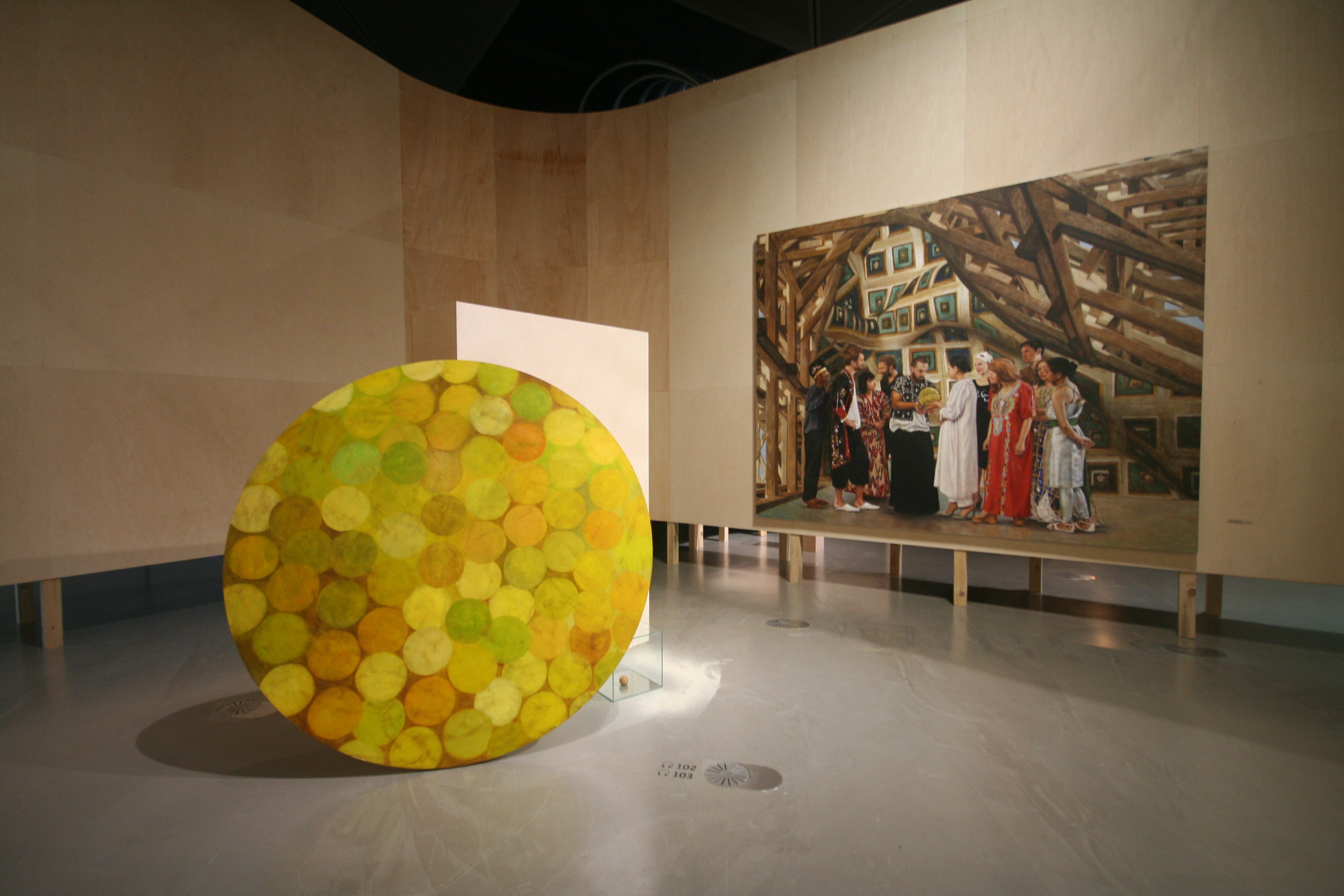 Im zweiten Stock war Antje Majewski: Die Gimel-Welt aufgebaut. Hier bot sich ein gänzlich unerwarteter Anblick: Hölzerne Trennwände teilen den Raum in runde und ovale Kojen, in denen jeweils einzelne Werke Majewskis zu betrachten sind. Wenn man noch ein Stockwerk weiter nach oben geht, in die „Needle“, bietet sich ein Blick von oben auf die Ausstellung, der ihre originelle Architektur erst richtig zur Geltung bringt.